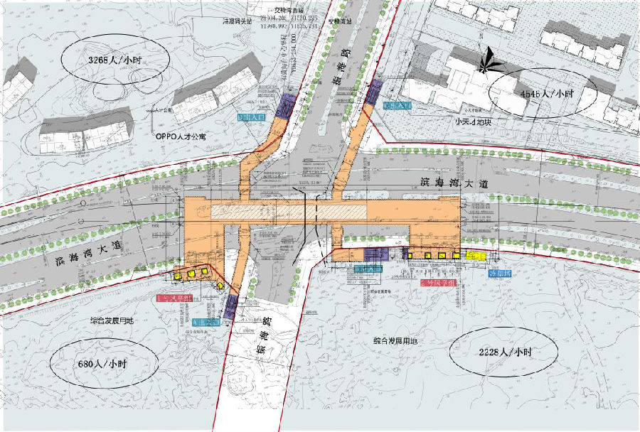 交椅灣西站的西北側(cè)為OPPO智能制造中心產(chǎn)業(yè)項(xiàng)目,東北側(cè)為小天才智能科技中心產(chǎn)業(yè)項(xiàng)目,周邊規(guī)劃以商業(yè)、住宅及綠化用地為主,共設(shè)置4個(gè)出入口,2組風(fēng)亭,總建筑面積約為1.38萬(wàn)平方米。