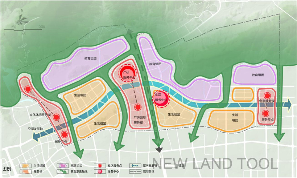 以“現(xiàn)代骨、傳統(tǒng)魂、自然衣”為理念,以“創(chuàng)新智慧、集約共享、校城融合、穩(wěn)凈交通、綠色生態(tài)、人文傳承”為指導(dǎo),打造“產(chǎn)、學(xué)、研”一體化發(fā)展,校城互動融合的綜合性大學(xué)新城區(qū)。